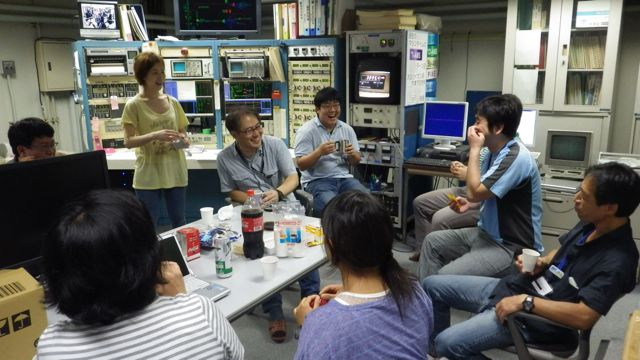 測定中のカーボン組を労うために午後のティーパーティが行われました。